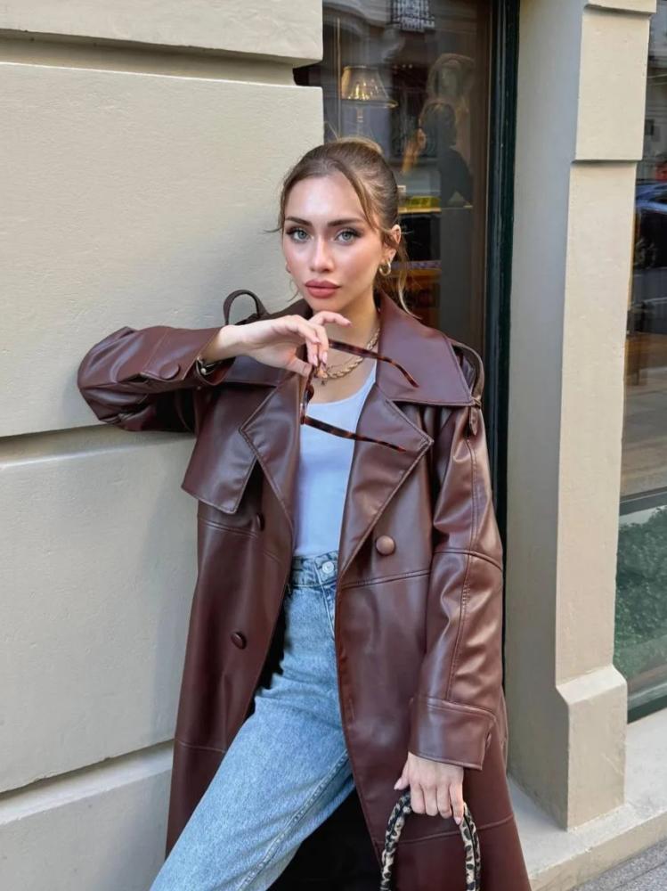 اجعلي كل الأنظار تتجه إليك مع هذا المعطف الجلدي الرائع!