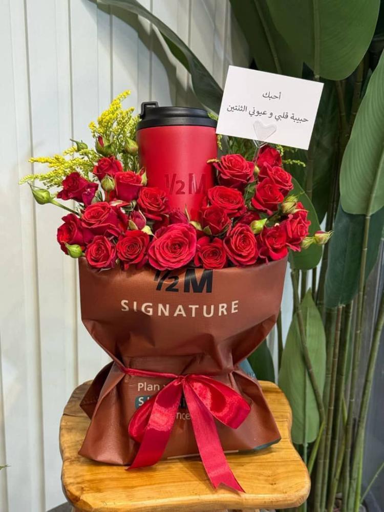 باقه ورد مع مق حافظ للبرودة، والحراراة.